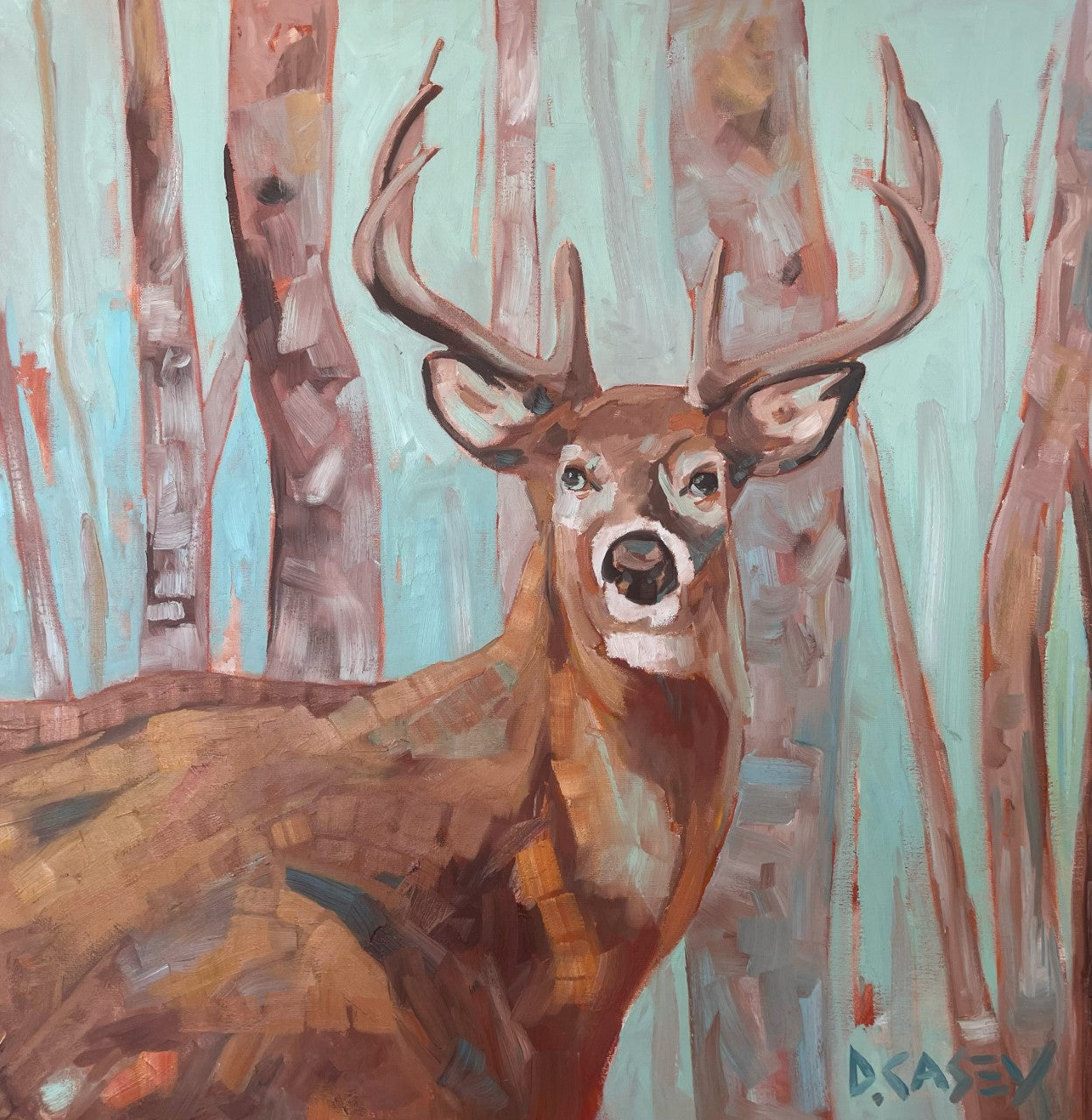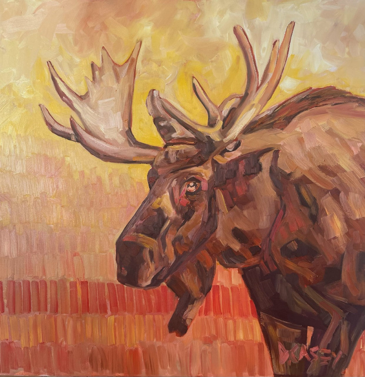A recent addition to my repertoire are wildlife pieces. I’ve been having fun painting colourful and cheerful little birds and noble & stoic big mammals that we find in Ontario and Quebec – such as moose, caribou, deer and polar bears.